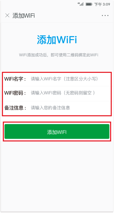 输入要绑定的wifi名字密码备注信息请填写上网码编号